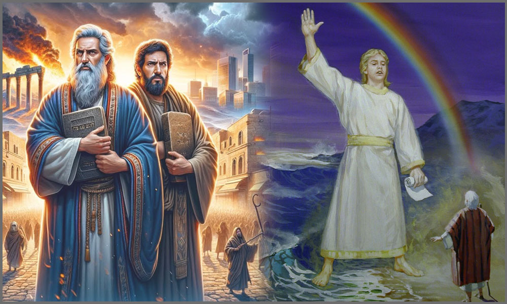 Dos testigos o profetas son enviados por Dios para que profeticen en Israel, por un tiempo. En ese período ellos harán milagros y no podrán ser dañados en ninguna forma. Cuando hayan acabado su testimonio, satanás hará guerra contra ellos y los matará. Sus cadáveres estarán expuestos en una plaza que corresponde al lugar donde murió Jesús. Las gentes los verán y no permitirán que sean sepultados. Los moradores de la tierra se alegrarán al ver los restos de estos dos profetas, pues les molestaba el mensaje que ellos daban.