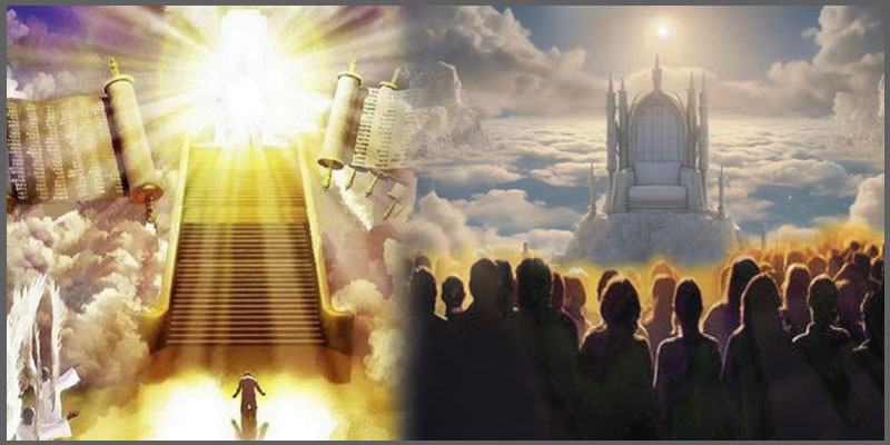 Un gran trono blanco en el cielo y los muertos de pie delante de Dios. Y los libros fueron abiertos, y otro libro fué abierto el cual es el libro de la vida, y fueron juzgados los muertos por las cosas que estaban escritas en los libros, según sus obras. (Ap. 20:12)