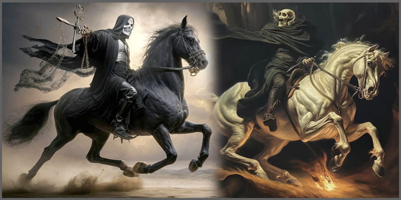 He aquí un caballo amarillo y el que lo montaba tenía por nombre muerte y el hades le seguía; y le fué dada potestad sobre la cuarta parte de la tierra para matar con espada, con hambre, con mortandad y con las fieras de la tierra. (Ap. 6:8)