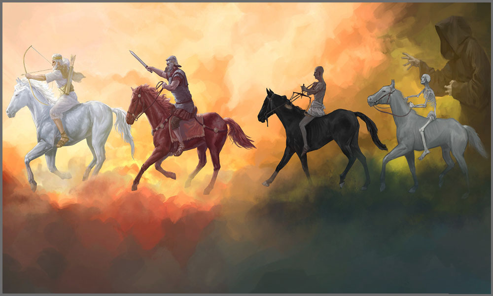 Estos primeros cuatro sellos son obra humana, influenciada por satanás. Dios lo permite de acuerdo a sus planes divinos; para que al final de los tiempos se realice su majestuosa victoria.