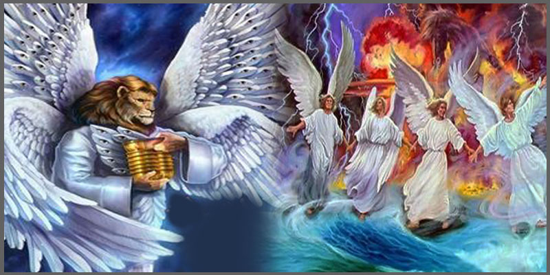 El cielo se abre y descubre el lugar sagrado de Dios: el tabernáculo del testimonio. De allí salieron los siete ángeles con las siete plagas. Y uno de los cuatro seres vivientes les dió las siete copas de oro llenas de la ira de Dios, que vive por los siglos de los siglos. (Ap.15:7).