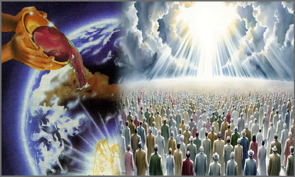 El humo de la gloria y el poder de Dios cubre el templo. Se escucha una gran voz: Id y derramad sobre la tierra las siete copas de la ira de Dios. (Ap.16:1).